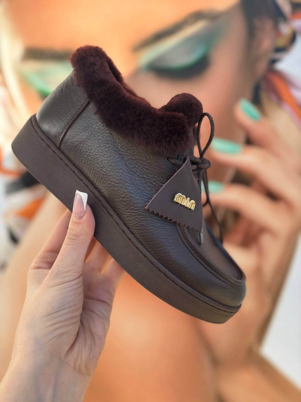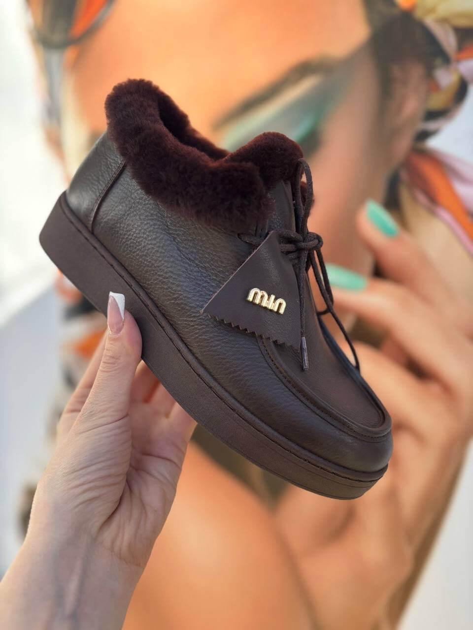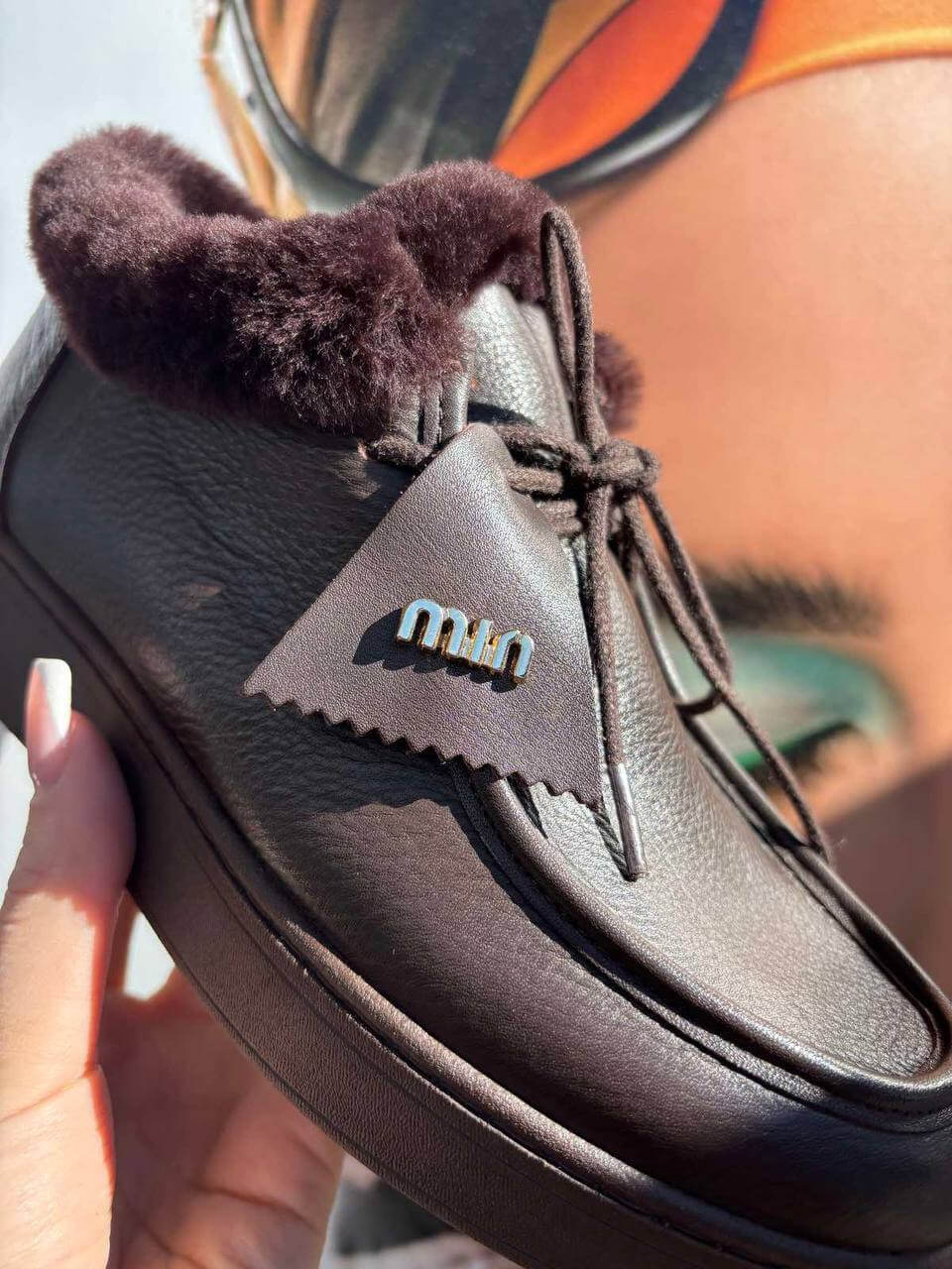 Теплі коричневі мокасини на комфортній платформі з м’яким хутряним оздобленням і акуратною шнурівкою. Підійдуть для щодня: тепло, м’яко й стильно під джинси чи пальто